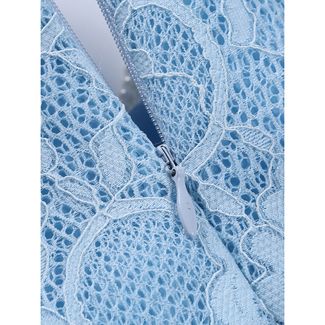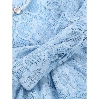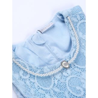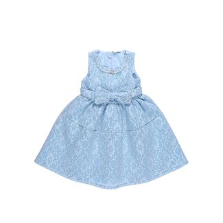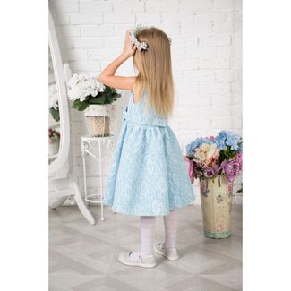 Романтичное нарядное платье из объемного кружева. Горловина украшена бусами из жемчуга с кулоном. Декоративный пояс с бантом спереди и застежкой на кнопке сзади. Юбка имеет атласную подкладку и пышный подъюбник с сеткой. Платье застегивается на потайную молнию на спинке. None Можно купить без предварительного заказа.