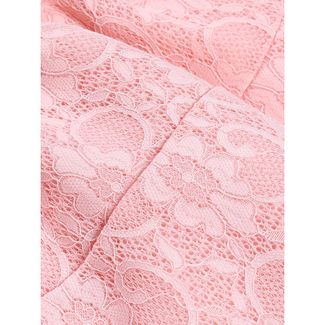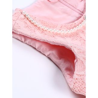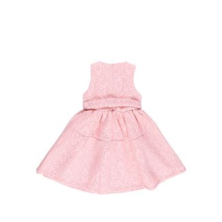 Романтичное нарядное платье из объемного кружева. Горловина украшена бусами из жемчуга с кулоном. Декоративный пояс с бантом спереди и застежкой на кнопке сзади.Юбка имеет атласную подкладку и пышный подъюбник с сеткой. Платье застегивается на потайную молнию на спинке. None Можно купить без предварительного заказа.