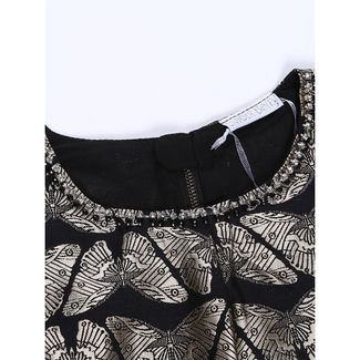 Нарядное платье из бронзового жаккарда. Горловина украшена ожерельем из страз. Модель платья А-силуэта со складками на юбочке. Застежка на бронзовую молнию на спинке. None Можно купить без предварительного заказа.