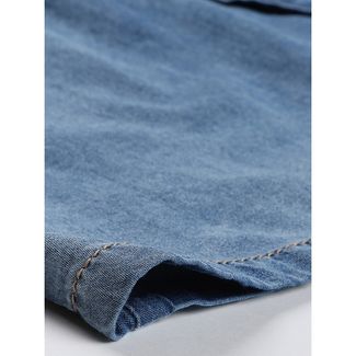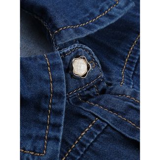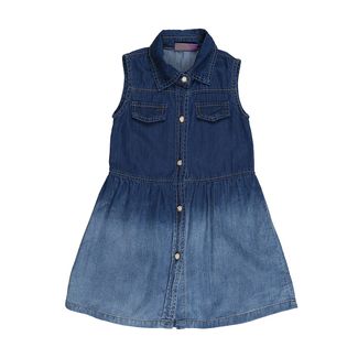Платье из тонкого хлопка под ""джинсу"" для девочки с отложным воротничком. Застегивается на оригинальные пуговки. None Можно купить без предварительного заказа.