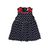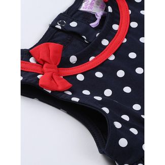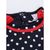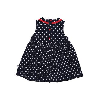 Трикотажное платье для девочки в белый горох. Талия завышена, кокетка декорирована красной бейкой и бантиками. None Можно купить без предварительного заказа.