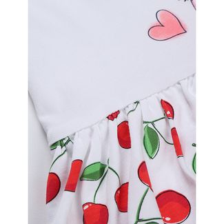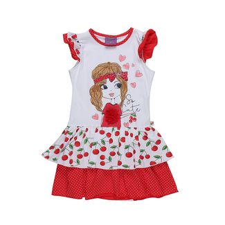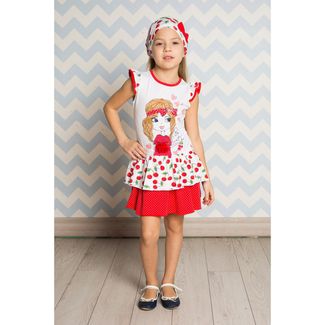 Яркое трикотажное платье из принтованной ткани с аппликацией. Низ изделия декорирован контрастными воланами. Рукава крылышки. None Можно купить без предварительного заказа.