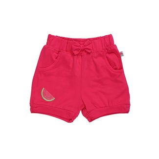 Яркие трикотажные короткие шорты для девочки. Спереди два кармана. Низ брючины декорирован яркой аппликацией. Эластичный пояс. None Можно купить без предварительного заказа.