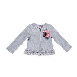 Жакет из фактурного футера. Застежка-молния.Декорорван воланами из кружева и объемными цветами. None Можно купить без предварительного заказа.