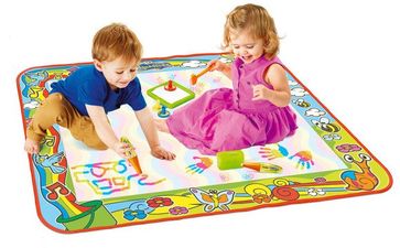 Коврик для рисования Tomy Aquadoodle Цветная радуга продается с несколькими инструментами для творчества. Это специальные маркеры, косточка, штампики. Набор предназначен для детей от 1,5 лет и старше.
