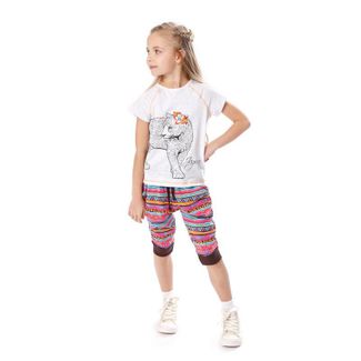 Особенность модели - футболка с рукавом реглан и удлиненной спинкой. Красивый принт состоит из современных элементов печати. None