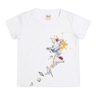 Стильная футболка для девочки из кулирного хлопкового трикотажного полотна с лайкрой. Футболка с округлым вырезом горловины, спереди принт в виде схемы сборки оригами птички.Прекрасное дополнение детского гардероба и отличный вариант для повседневной носки. None Можно купить без предварительного заказа.