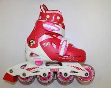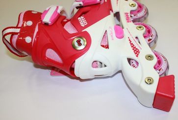 Данные роликовые коньки прекрасно подойдут для девочек, которые только начинают учиться этому искусству. Анатомическая форма ботинка плотно обхватывает ногу, колеса имеют удобную форму, образовывая единую линию. В таких ботинках будет комфортно и уже умеющим кататься на роликах. Если ваш ребенок только встает на ролики, не лишним будет подумать о дополнительной защите: наколенники и наладонники. Таким способом можно избежать много неприятных травм. None