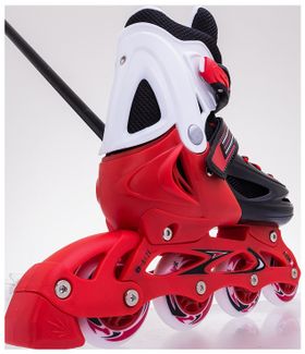 Ролики раздвижные Rocky - это более дорогая и качественная модель, чем Scout и Rush. Модель Rocky ориентирована на детей, подростков и взрослых людей. На ней можно как начинать кататься, так и продолжать развивать свои навыки катания. Более качественные материалы и колеса с подшипниками, более интересный внешний вид. Полностью пластиковый ботинок привлечет аудиторию людей, кто до этого покупали тканево-пластиковую модель. Многим пользователям симпатизирует пластиковый ботинок экстремальных моделей, но с точки зрения неудобства катания на них, покупают обычные. Если предоставить поклонникам модель в пластиковом корпусе, многие из них сделают выбор в пользу данного ботинка. Подшипники ABEC-5 и автоматическая система раздвижения. За счет качества материалов и стильного дизайна эта модель будет интересна даже самому предвзятому пользователю. None