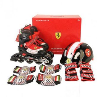 Роликовые коньки раздвижные Ferrari набор с защитой и шлемом FK11-1 (красный/черный) включакт в себя все необходимое для катания, шлем, защиту на колени, локти и ладони. Яркий дизайн в стиле Ferrari поможет выделиться среди однообразных, стандартных роликов. None