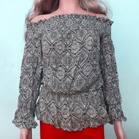 Стильная блуза с цветочным орнаментом - идеальный вариант для повседневного гардероба! Модель с открытым плечом. На спинке бантик. В наличии M 1 шт None Есть доставка.