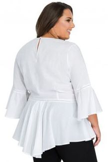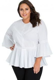 Блуза свободного кроя с рукавом 3/4 и круглым вырезом идеально подойдет для базового гардероба. Низ изделия украшен воланом, имитирующим баску, что позволит сделать талию визуально меньше. Будьте неотразимы! В наличии 2XL 1 шт None Есть доставка.