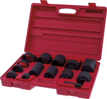 Комплект набора: Втулка сквозная 63,5 мм, длина 69 мм - 1 шт. Втулка сквозная 58 мм, длина 70 мм - 1 шт. Втулка сквозная 63,5 мм, длина 20 мм - 1 шт. Втулка с донышком с вырезом 63 мм, длина 93 мм, глубина 81 мм - 1 шт. Втулка с донышком с вырезом 73 мм, длина 83 мм, глубина 73 мм - 1 шт. Втулка с донышком 50 мм, длина 93 мм, глубина 78 мм - 1 шт. Втулка с донышком 51 мм, длина 74 мм, глубина 60 мм - 1 шт. Втулка с донышком 57 мм, длина 60 мм, глубина 50 мм - 1 шт. Втулка с донышком 63 мм, длина 48 мм, глубина 38 мм - 1 шт. Втулка с донышком усечённая 54 мм, длина 21,5/18 мм, глубина 12/9 мм - 1 шт. Втулка сквозная с вырезом 76,5 мм, длина 58 мм - 1 шт. Втулка с донышком без отверстья 57 мм, длина 18 мм, глубина 12,5 мм - 1 шт. Втулка сквозная наруж. 36,5/31 мм, внут. 20,5 мм, длина 25,5 мм - 1 шт. Адаптер малый наруж. 57 мм, внутр. 46,5 мм - 1 шт. Толкатель 16 мм, длина 76,5 мм - 1 шт. Инструкция - 1 шт. Кейс пластиковый - 1 шт.