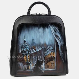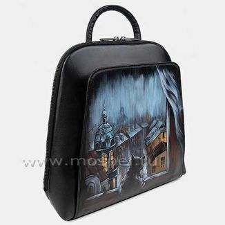 Черный женский рюкзак из натуральной кожи с рисунком "Зимний вечер":2 отделения плюссреднее отделение на молниикармашек на молниинаружный кармана на молнии сзадикарман на магните спереди Кожаный рюкзак с ручной росписью "Зимний вечер" бренда Alexander TS - настоящее произведение искусства. Картинка на рюкзачке создана художником при помощи специальной техники выжигания по коже и росписи красками. Каждый рисунок наносится на кожу вручную, что обеспечивает его неповторимость. В нашем магазине можно купить как готовую сумку, так и заказать сумку индивидуально. При одновременном заказе комплекта аксессуаров, например сумка +портмоне, предполагается дополнительная скидка. None Возможен самовывоз. Есть доставка.