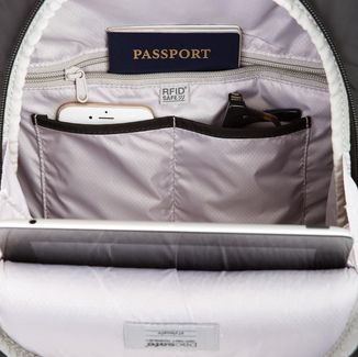 Женский рюкзак Pacsafe Stylesafe Backpack. Цвет: navy - синий. Легкий и удобный. Ему наверняка найдется применение и в городе и в путешествии. Отделение для ноутбука до 11”. Потайной карман. Карман для телефона Внутренние карманы для хранения личных вещей Карабин для ключей или кошелька Боковой карман для бутылки с водой Рюкзаки коллекции Stylesafe бренда Pacsafe имеют 6 степеней защиты от краж и скрытого хищения: RFIDsafe™ blocking pockets & material (защитная ткань от RFID... None Возможен самовывоз.
