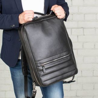 Мужской рюкзак трансформер из натуральной кожи для ноутбука 15" Lakestone™ Banister Black Одно отделение Два кармана на молнии Отделение для планшета Отделение для ноутбука 15" Два открытых кармана Карман на молнии на лицевой стороне Карман на молнии на обратной стороне рюкзака Съемные уплотненные стенки на липучке позволяют перекроить пространство под своему желанию. Лямки рюкзака отстегиваются и, прикрепив длинный ремень, получается сумка. None Возможен самовывоз.