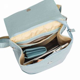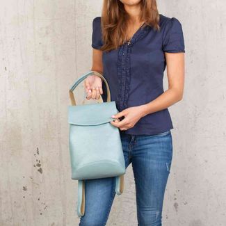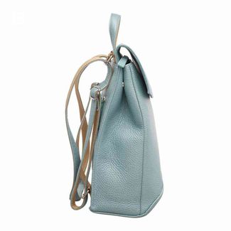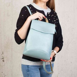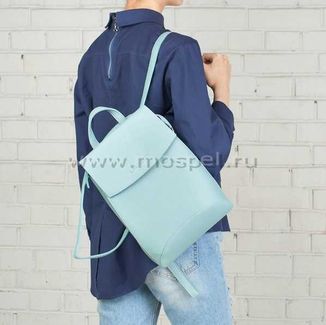 Женская сумка-рюкзак в небесно-голубомом цвете. Эту модель можно использовать как рюкзак и как сумку через плечо. Поэтому аксессуар отлично будет смотреться и с платьем, и с одеждой в спортивныом стиле. Грамотная организация внутреннего пространства. Однобольшое отделение без лишних перегородок, позволяет транспортировать в нем габаритные вещи. При этом более мелкие аксессуары можно разместить в множестве карманов открытого и закрытого типа. Рюкзак сшит из качественной натуральной кожи, поэтому оно прослужит долгого времени и не утратит первоначальной привлекательности на всем сроке эксплуатации. По своим габаритам вмещает формат А5, ноутбук или планшет до 10" дюймов. Это практичное решение для стильной девушки, следящей за модными веяниями.внутри одно отделение,карман на молнии,два открытых кармана, отсек для ручки,снаружи: карман на молнии на обратной стороне рюкзака. None Возможен самовывоз. Есть доставка.