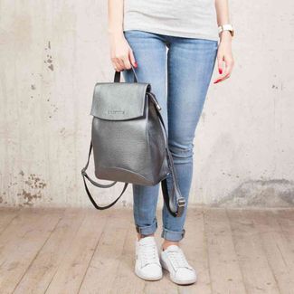 Lakestone Сумка-рюкзак из серебристой кожи Ashley Silver Grey