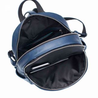 Синий кожаный рюкзак для женщин. Рюкзак имеет мягкие и плавные формы, но при этом он не лишен динамики. Такое сочетание позволяет брать его с собой как на прогулку,так и на занятия в институт. два отделения внутри два открытых кармана карман на молнии и отсек для ручки вмещает ноутбук до 14 дюймов карман на молнии, на лицевой стороне открытые карманы по бокам None Возможен самовывоз.