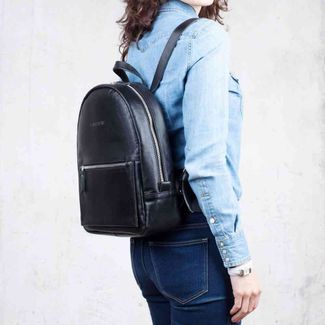 Стильный женский рюкзак из натуральной кожи, черного цвета. Компактный и при этом вместительный, он подходит как для прогулки, так и для учебы. Идеальный выбор для городского жителя. формат А4 вмещает ноутбук до 14 дюймов одно основное отделение внутри один карман на молнии снаружи один карман на молнии на лицевой стороне рюкзака None Возможен самовывоз.