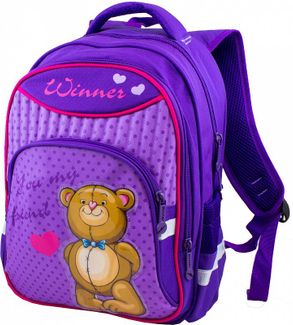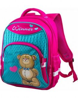 Рюкзак Winner Медведь с сердечком в ассорт изготовлен из качественного полиэстера, который отличается высокой прочностью и износостойкостью. Модель имеет два больших отделения для школьных принадлежностей, а также дополнительные карманы для размещения необходимых ребенку мелочей. Основные особенности рюкзака: широкие регулируемые лямки, спинка с накладками для вентиляции, светоотражающие элементы, обеспечивающие пассивную безопасность ребенка и удобная ручка для переноски. Модель дополнительно прошита в местах повышенной нагрузки, декорирована стильным принтом с медвежонком. Минимальная сумма заказа 1500 руб. Возможен самовывоз. Есть доставка.