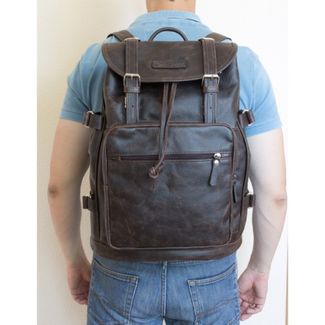 Мужской классический кожаный рюкзак Carlo Gattini Volturno Вольтурно выполнен из высококачественной итальянской натуральной кожи типа "Флоттер" темно-коричневого цвета. У этого кожаного рюкзака одно большое отделение, которое затягивается ремешком и закрывается клапаном на замках. Внутри отделения есть карман на молнии и отделения для мелочей. В основное отделение есть доступ сбоку через молнию. В кожаный рюкзак помещается ноутбук с диагональю до 15.6 дюймов, но лучше его там носить в чехле и вместе с другими вещами. Снаружи два кармана на молнии. Размер внешнего кармана на молнии: 24х25 см. None Возможен самовывоз. Есть доставка.