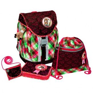 Школьный комплект Pferdefreunde 10577 для ученицы начальной школы. В одном стиле собраны: школьный рюкзак с ортопедической спинкой пенал с наполнением 2013,53 кошелек на шнурке 1310 мешок для обуви 3638 Кроме яркого внешнего вида, можно отметить качество материала - нейлон с водоотталкивающей пропиткой. И конструкцию дна из пластика, которое защищает от повреждений и делает ранец более устойчивым. Вес школьного ранца без наполнения 1,2 кг, с наполнением 2,060 кг. None Возможен самовывоз.