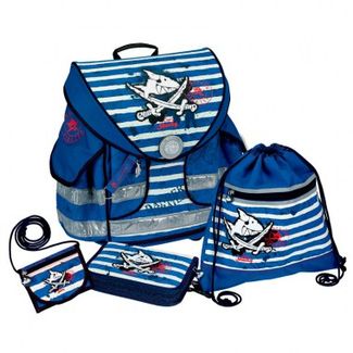 Классный комплект Captn Sharky 10589 для ученика начальной школы. В одном стиле собраны: школьный рюкзак с ортопедической спинкой пенал с наполнением 2013,53 кошелек на шнурке 1310 мешок для обуви 3638 Кроме яркого внешнего вида, можно отметить качество материала - нейлон с водоотталкивающей пропиткой. И конструкцию дна из пластика, которое защищает от повреждений и делает ранец более устойчивым. Вес школьного ранца без наполнения 1,2 кг, с наполнением 2,060 кг. None Возможен самовывоз.