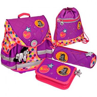 Классный комплект из школьного ранца и школьных принадлежностей европейской марки Bunte Punkte 11407 сиреневый. В одном стиле собраны: школьный рюкзак с ортопедической спинкой пенал на молнии 2013,53 пенал на молнии мягкий мешок для обуви 36*38 Кроме яркого внешнего вида, можно отметить качество Bunte Punkte. Вес ранца без наполнения 1,2 кг, с наполнением 2,060 кг. None Возможен самовывоз.
