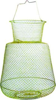 Садок металлический круглый. Диаметр в нижней части - 25 см, ячейка металлической сетки - 12 мм. Сетка садка имеет гальванические покрытие для устойчивости к коррозии. В нижней и верхней части садка предусмотрены клапаны с пружинным механизмом. None