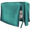 Чехол-укрытие "Престиж" изготовлен из плотной водоотталкивающей прорезиненной (брезентовой) ткани темно-зеленого цвета и полностью закрывает садовые качели как сверху, так и с четырех сторон. На нижних углах чехла установлены люверсы для крепления к корпусу садовых качелей с помощью веревки, которую нужно привязать с помощью люверсов.