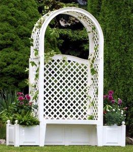 Садовая арочная скамейка от известного немецкого производителя KHW украсит любой садовый или дачный участок, парк или просто газон. В двух клумбах, объемом 44 л, расположенным по бокам, можно посадить красивые цветы, а по арке пустить плющ или декоративный виноград. Скамейка, несмотря на свои внушительные размеры в собранном виде, достаточно легкая и компактная при транспортировке. None