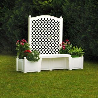 Садовая скамейка от известного немецкого производителя KHW украсит любой садовый или дачный участок, парк или просто газон. В двух клумбах, объемом 44 л, расположенным по бокам, можно посадить красивые цветы, а по стенке пустить плющ или декоративный виноград. Скамейка, несмотря на свои внушительные размеры в собранном виде, достаточно легкая и компактная при транспортировке. None