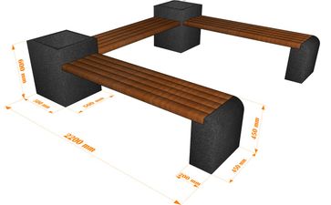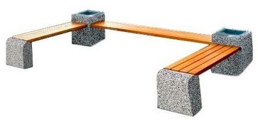 Скамейка Евро 1 Комплект включает в себя несколько отдельных элементов: три места для сидения и две урны, которые можно использовать как вазоны для цветов. Это очень удобно при использовании такой скамейки в общественных местах или парковых зонах. Длина составляет 220 см, 250 см, 220 см, ширина - 50 см, высота - 50. Вес всего изделия составляет 460 кг. В конструкции используется каменная крошка, бетон и деревянные рейки для сидения, покрытые лаком.