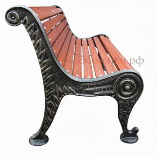 Материал: чугун, отборная хвоя-брус толщиной 60*40 мм,болтовое крепление бруса к ножкам на болтах м8, антисептик, полуматовый лак-стандартное исполнение.