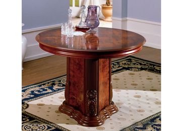 Артикул - DAN_48_raiz,Бренд - Dana (Россия),Ширина, мм - 1100, 1400,Глубина, мм - 1080,Высота, мм - 750,Цвет столешницы - корень ореха раис,Тип поверхности столешницы - глянцевый,Материал столешницы - дерево, МДФ,Цвет корпуса - корень ореха раис,Тип поверхности корпуса - глянцевый,Материал корпуса - дерево, МДФ,Особенности - стол-трансформер,Дополнительные параметры - Обеденный круглый стол. Классический испанский стиль мебели. Раскладывается путем выдвежения вставки по центру. Длина в разложенном состоянии - 1400 мм. Материалы - натуралоьное дерево, ППУ, МДФ. Многослойная лакировка с шелкографией. Отличная устойчивая ножка стола в стиле ампир. None Страна производства: Россия Есть доставка. Доставка: 590.0RUR