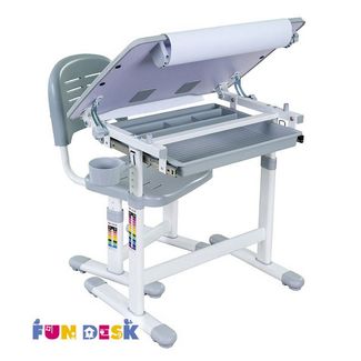 FunDesk Bambino - комплект, включающий регулируемые по высоте парту и стул. Помимо этого, парта снабжена регулируемой по наклону столешницей с лотками для канцелярии, держателем для тетрадей и книг, ящиком, держателем для рулона бумаги и двумя магнитными линейками для фиксации бумаги на парте. Поставляется в комплект с крючком для рюкзака и подстаканником. Материал - МДФ, пластик ABS и сталь. Скидка 10% на этот товар Возможен самовывоз. Есть доставка.