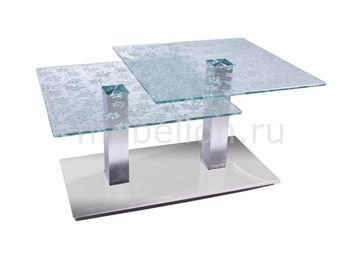 Артикул - MOP_631_chrome,Бренд - Мебель Опт (Китай),Серия - 631,Ширина, мм - 1100,Глубина, мм - 600,Высота, мм - 350-450,Цвет столешницы - неокрашенный с белым рисунком,Тип поверхности столешницы - прозрачный,Материал столешницы - стекло,Цвет корпуса - хром,Тип поверхности корпуса - глянцевый,Материал корпуса - металл,Дополнительные параметры - Две столешницы. Размер каждой из них 6060 см, подстолье 8040 см / общий размер стола 110*60 см, высота низкой столешницы от пола 35 см, высота от пола высокой столешницы 45 см None Страна производства: Китай Есть доставка. Доставка: 590.0RUR