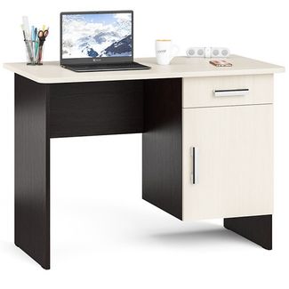 Стол письменный С-МД-1-09. Цвет - венге/дуб. Размер (ШхГхВ) 105х57х75 см. Устойчивый однотумбовый стол обладает хорошей системой хранения - распашное отделение и выдвижной ящик расположены справа. Ключевой элемент рабочего уголка дома и в офисе. None Есть доставка.