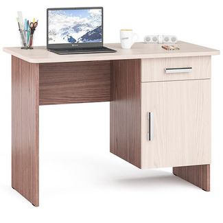 Стол письменный С-МД-1-09. Цвет - ясень шимо светлый/ясень шимо тёмный. Размер (ШхГхВ) 105х57х75 см. Устойчивый однотумбовый стол обладает хорошей системой хранения - распашное отделение и выдвижной ящик расположены справа. Ключевой элемент рабочего уголка дома и в офисе. None Есть доставка.