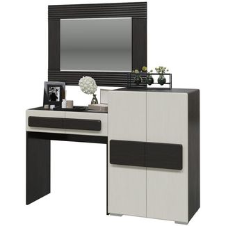 Стол туалетный с зеркалом и тумбой Престиж. Цвет - венге цаво/жемчужный лён. Размер (ШхГхВ) 130х40х160 см. Компактный столик с ящиками, зеркало в раме и удобная тумба с тремя полками за распашными дверками - идеальная комплектация для дамского уголка Красоты! Светодиодная подсветка в комплект не входит. None Есть доставка.