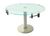 Стол обеденный. Круглый раскладной по бокам стол на одной ноге обтянутой кожзаменителем, стекло "капли" (или черное стекло). Современный, сверх надежный механизм раздвижения. Основание — натуральный камень.