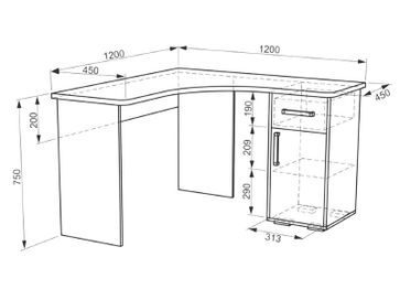Два крыла по 1200 мм предоставляют огромную рабочую поверхность. Здесь есть место и для компьютера, и для письменных принадлежностей. Углы столешницы имеют округлую форму — риск травм сведен до минимума.<br>