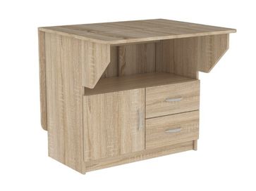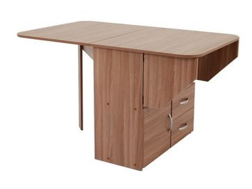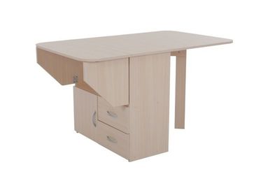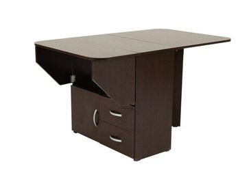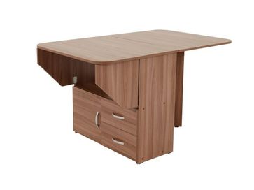 Стол-книжка тумба выполнен из ЛДСП толщиной 16 мм, края обработаны кромкой ПВХ 0,4 и 1 мм. В ящиках используются роликовые направляющие.<br /> Максимальная нагрузка на стол составляет 50 кг. На одно разложенное крыло — нагрузка не более 15 кг. None Страна производства: Россия