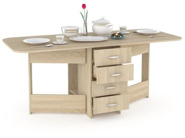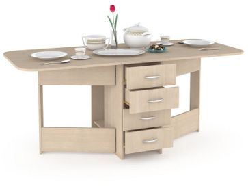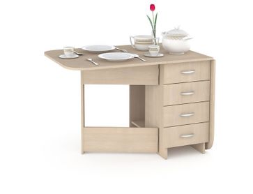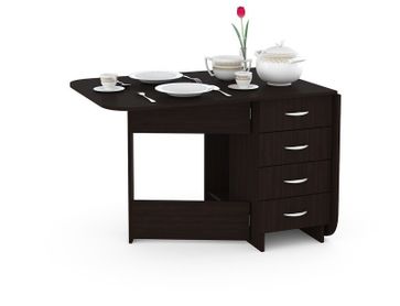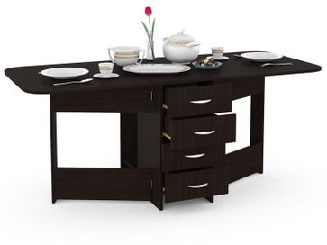 Стол-книжка Глория 606 станет замечательным помощником в организации ужина для двоих, семейного застолья или дружеской вечеринки.<br> Прочный корпус и широкая столешница модели произведены из высококачественной ЛДСП, толщина которой составляет 16 мм. Конструкция модели подразумевает эргономичную тумбу с четырьмя выдвижными ящиками, где вы сможете с удобством хранить столовые приборы, скатерти и множество других вещей.<br> Глория 606 имеет три варианта состояния. В полностью сложенном виде ширина модели составляет всего 424 мм, вы сможете использовать изделие в качестве тумбы или подставки. Ширина стола в полностью разложенном виде — 1822 мм.<br> Также вы можете раскладывать стол наполовину, получив при этом комфортабельную обеденную зону.<br> <br> Материалы исполнения — ЛДСП.<br> Вместительность — 7-8 персон.<br> None Страна производства: Россия