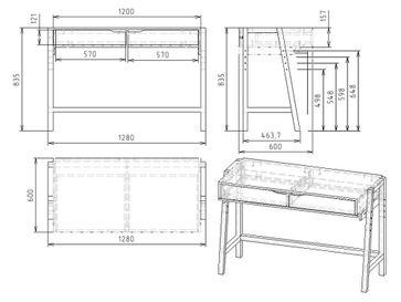 Характеристики: <br> Материал стола: ЛДСП.<br> Материал опор: массив березы.<br> Тип направляющих: роликовые.<br>