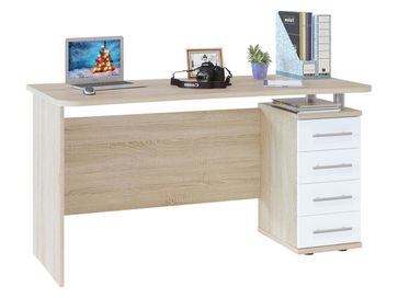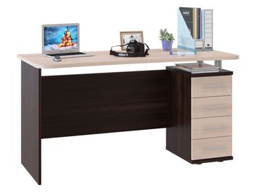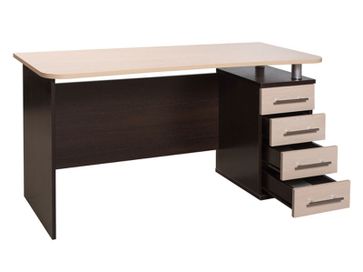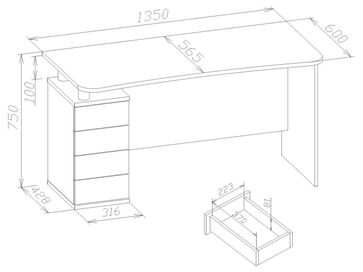 Преимущества: <br> функциональная конструкция — имеются четыре выдвижных ящика и ниша над ними;<br> просторная столешница — достаточно места для монитора, сопутствующей аппаратуры, канцелярских принадлежностей и прочих вещей для работы;<br> эргономичный изгиб столешницы — делает работу за столом более комфортной;<br> универсальная сборка — тумбу можно расположить как справа, так и слева.<br>