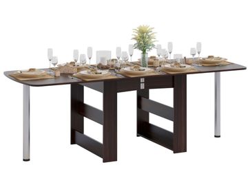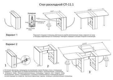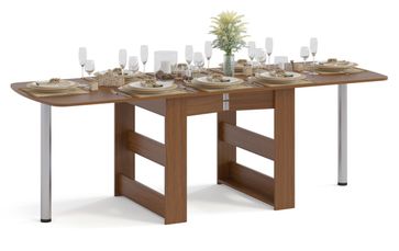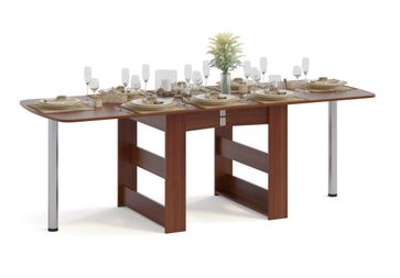 Стол-книжка для любителей устраивать пышные застолья. Уникальность стола заключается в том, что он имеет три варианта размера:<br> <br> Сложенный стол – размер 740 Х 314 Х 830 мм – может использоваться как пристенный столик;<br> На половину разложенный стол – размер 740 Х 1680 Х 830 мм – подойдет для небольшого праздничного обеда;<br> Полностью разложенный стол – размер 740 Х 2255 Х 830 мм – подойдет для масштабного застолья.<br>