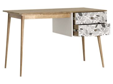 Письменный стол Бербер поможет создать функциональное рабочее или учебное пространство и удачно дополнит интерьер в скандинавском стиле. Под столешницей расположены два выдвижных ящика на шариковых направляющих с плавным бесшумным ходом. Принт нанесен на фасады при помощи специальных ультрафиолетовых чернил, благодаря чему устойчив к внешним воздействиям. Высокие ножки визуально облегчают конструкцию.<br>