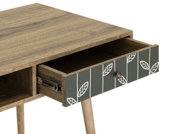 Письменный стол Бербер 2 станет отличной основой для обустройства просторного уголка для работы или учебы. Два выдвижных ящика и открытая ниша помогут поддерживать порядок на столешнице. Благодаря увеличенной ширине рабочей поверхности здесь удобно помещается всё необходимое. Высокие ножки визуально облегчают конструкцию. Принт на фасадах устойчив к выгоранию, растрескиванию и механическим повреждениям.<br>